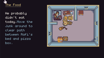 Move junk around to create space for Rafi to walk toward the goal of the level. There are 5 levels.
